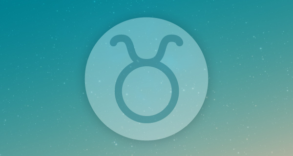 A light teal and orange image with the Taurus symbol of the bull in the center.